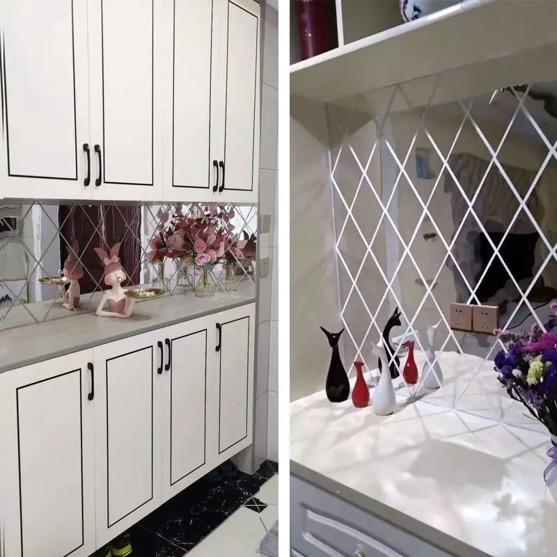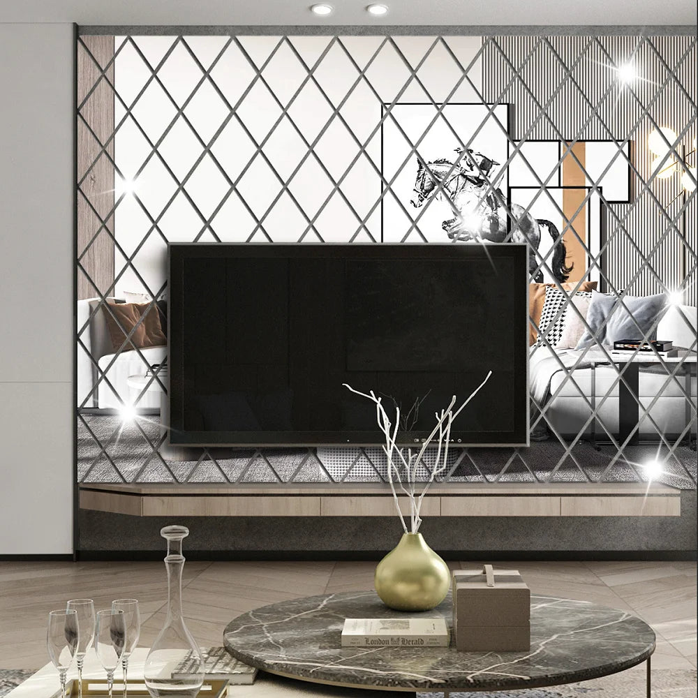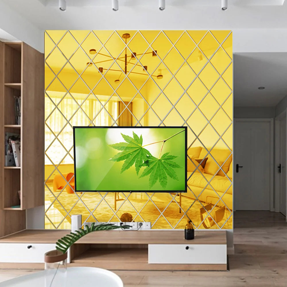 3D Acrylic Mirror Wall Stickers – Self-Adhesive Triangles & Diamonds DIY Home Decor for Living Room, Bedroom & Bathroom